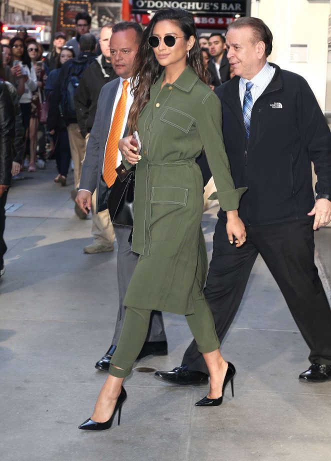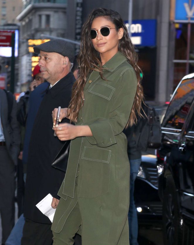 Shay Mitchell was monochromatic for an appearance at Good Morning America, clad in a Manning Cartell $449 Khaki Military Issue Trench and $299 Khaki Military Issue Pants: