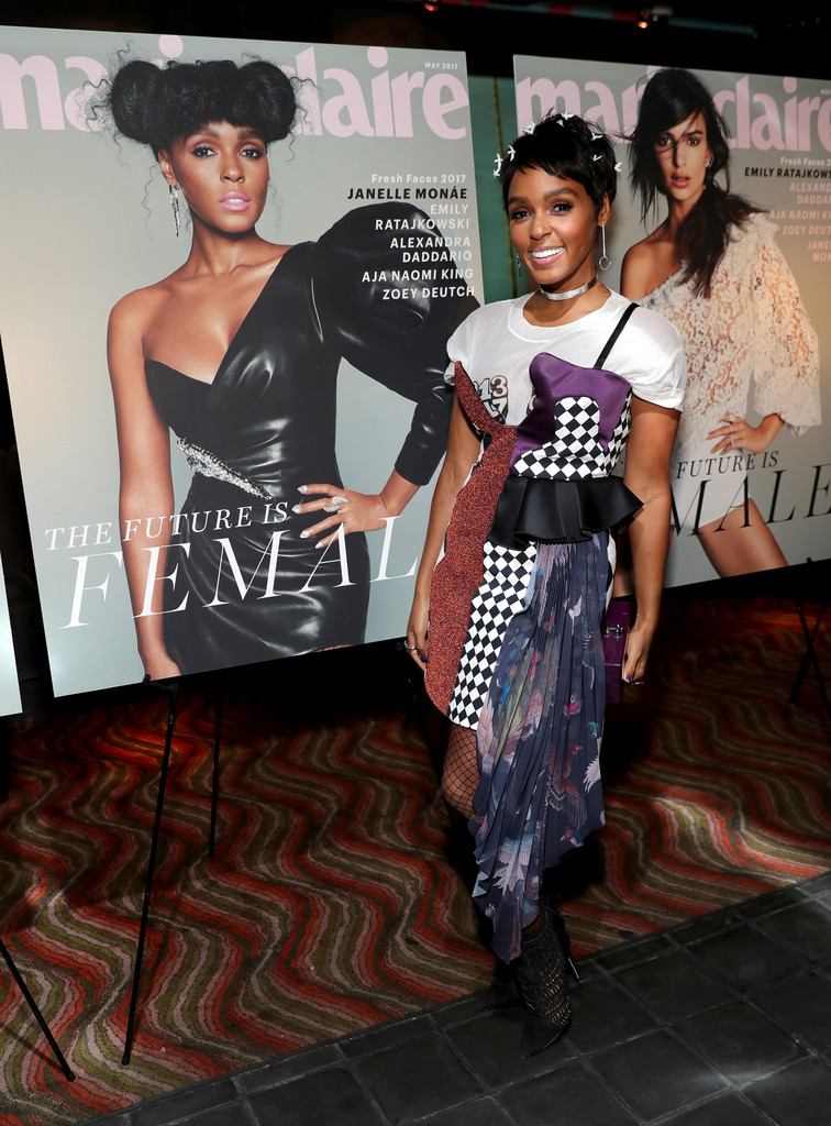 Janelle Monae turned heads in a printed Off-White dress, given added flair with clever bird pins in her cute pixie. She always nails it.