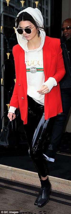Daughter Kendall followed her mother’s lead in a $995 pair of black flats with furry accents.