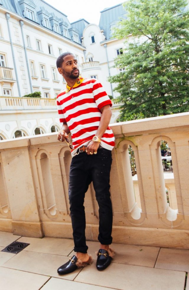 Lastly, Big Sean struck a pose in Frankfurt in black Princetowns and a Gucci Polo Shirt.