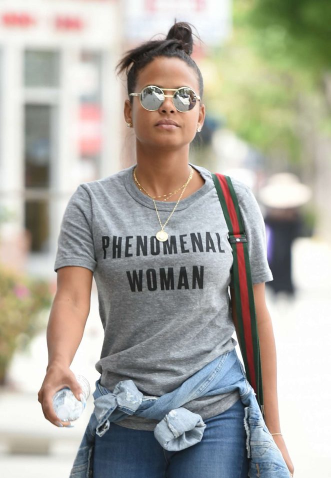 Christina Milian was spotted out and about in L.A., sporting a $32 Meena Harris Phenomenal Women T-Shirt: