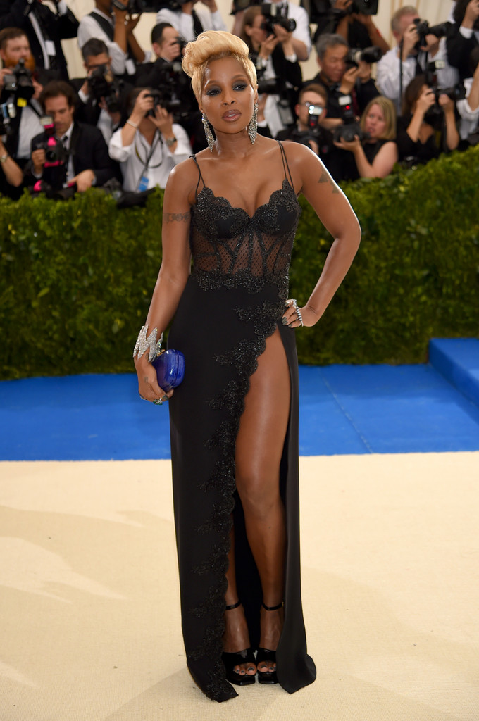 Mary J. Blige smoldered in a black lace La Perla gown with a sexy slit. She’s never looked hotter.