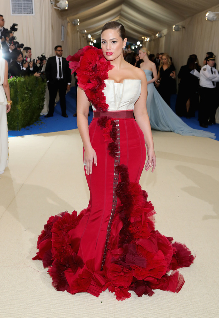 Ashley Graham upped the romance quotient for the night in a white and red ruffled H&M gown. Ravishing!
