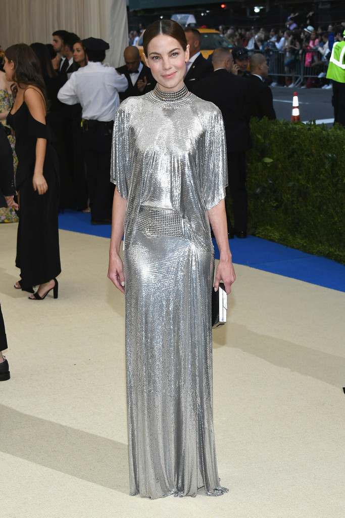 Michelle Monaghan’s silver, chainmail-inspired Paco Rabanne gown was impressive in its craftsmanship and powerful simplicity.