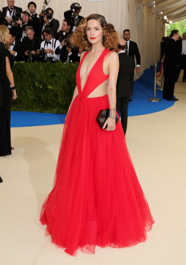 Rose Byrne opted for a red Ralph Lauren cutout gown with a full skirt and plunging neckline. Gorgeous, no?