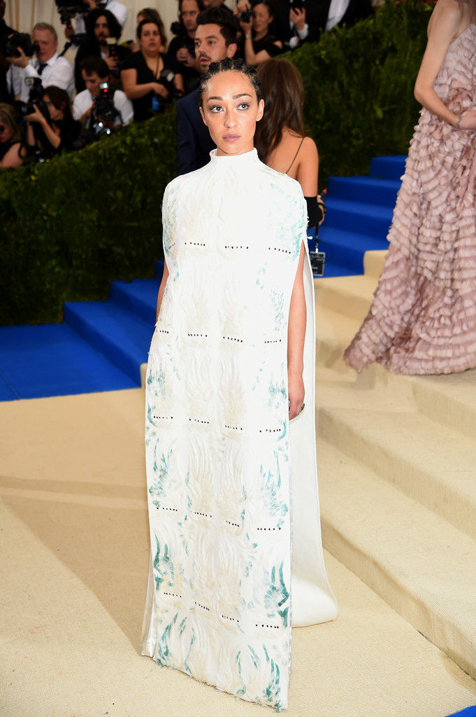 Cornrows and a divine white Valentino caped gown were Ruth Negga’s choices for the gala.