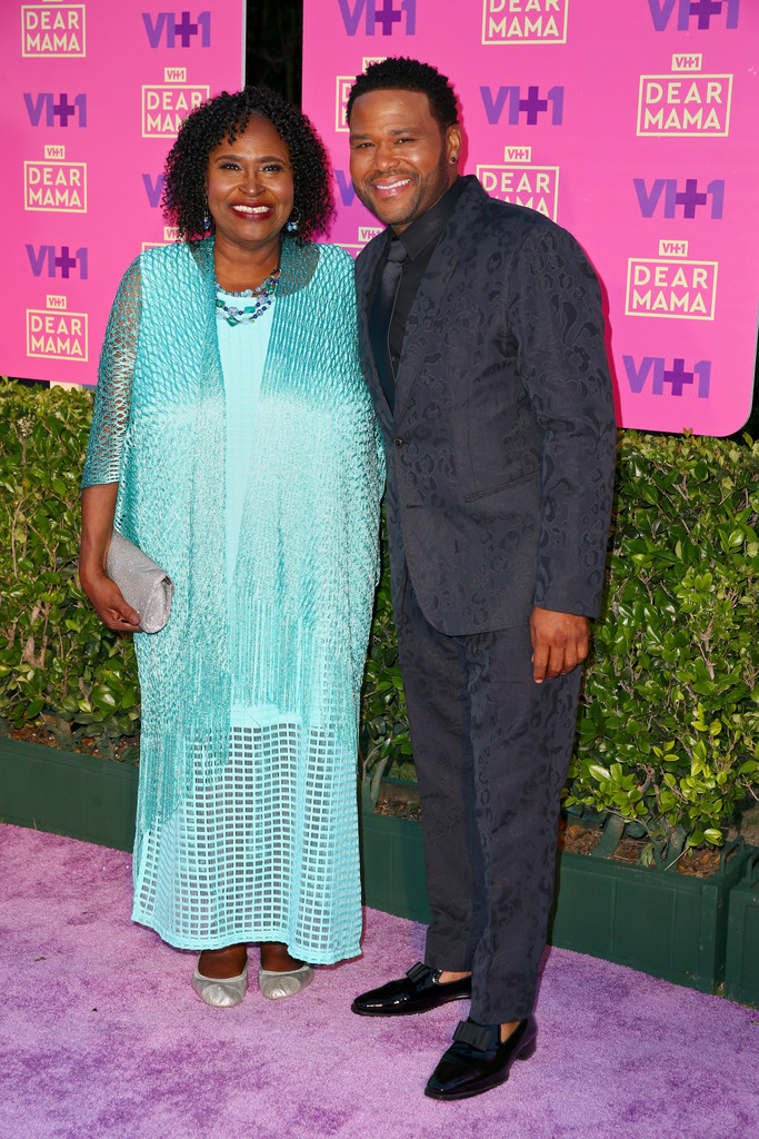 Floral jacquard and bow-detailed loafers were on the style agenda for the night’s co-host Anthony Anderson, while his mother Doris Hancox went bold in aqua and her luscious curls.