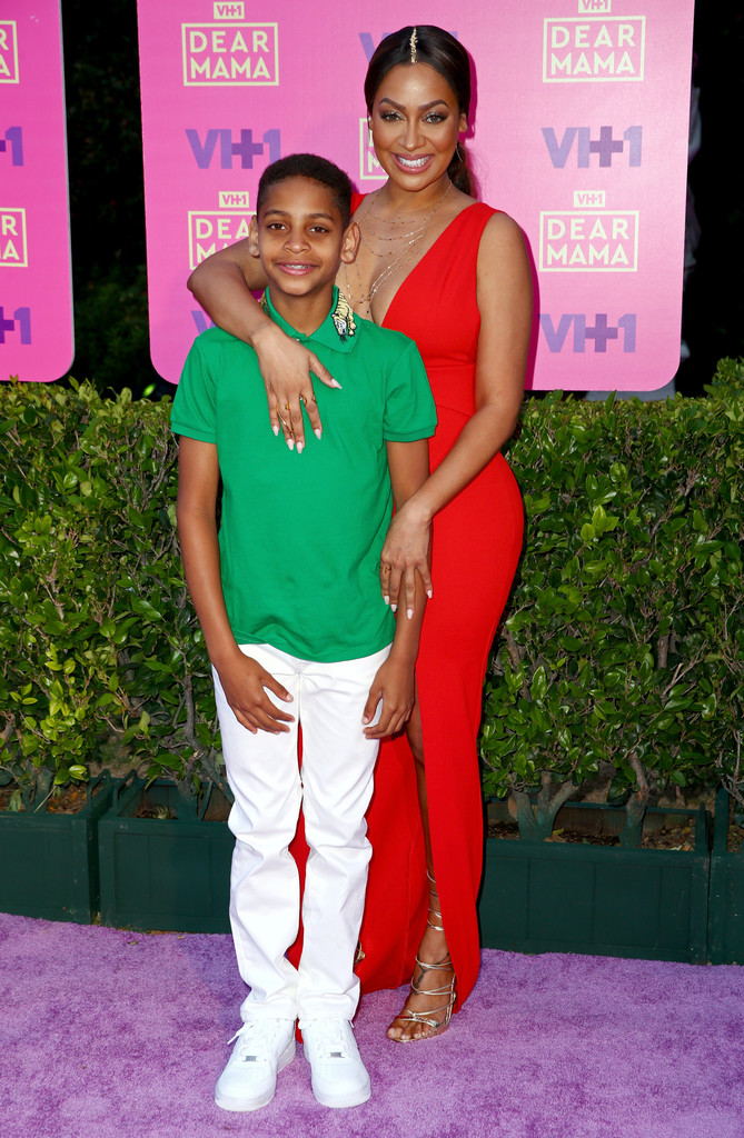 LaLa Anthony was the lady in red with adorable son Kiyan, slipping on a curve-hugging Zachary the Label gown in the fiery hue.