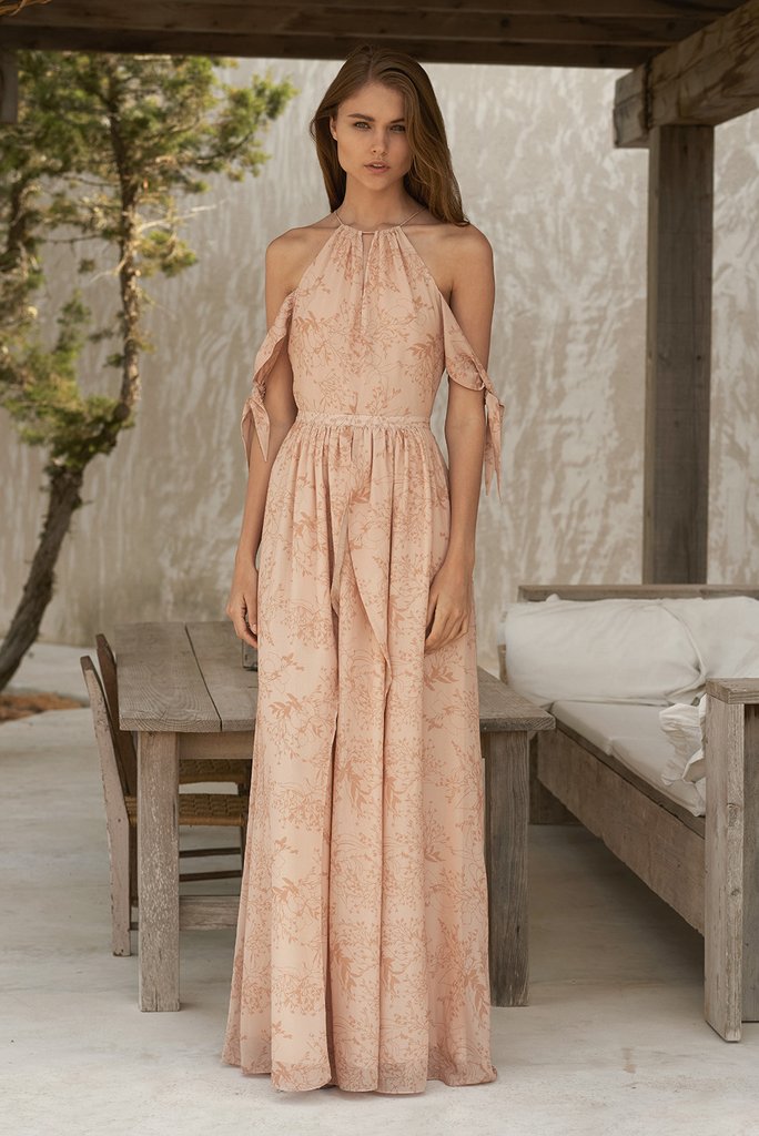 The Jetset Diaries floor-length dress features a low-key floral print detail, tasseled drawstring at the gathered keyhole neckline and sashes tie over the arm openings.