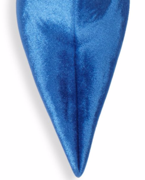 Her lustrous Italian made pull-on style velvet boots feature a lengthening point toe and a self-covered heal measuring 4.25″.