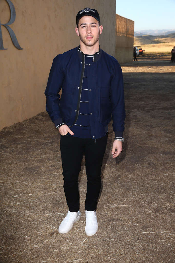 Nick Jonas kept it cool in black, navy, and white separates. He has great style!
