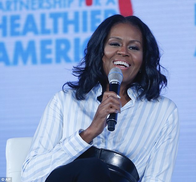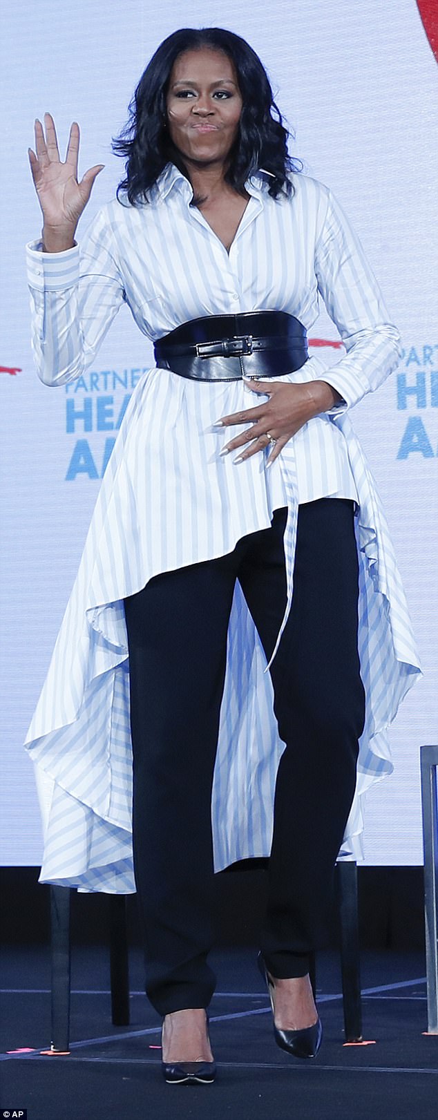 Former First Lady Michelle Obama attended the Healthier America Summit clad in a $447 Palmer Harding Asymmetrical Hem Shirt: