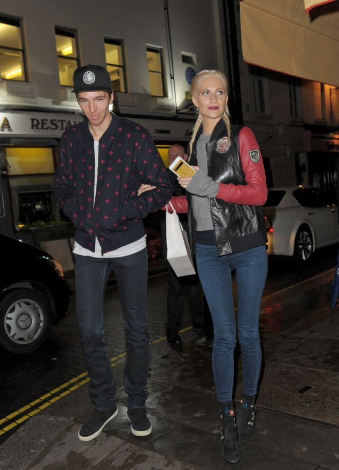 Poppy Delevingne uplifted a pared-down ‘fit with a Balmain leather bomber. Nice to see her more casual, she looks great in just about anything!