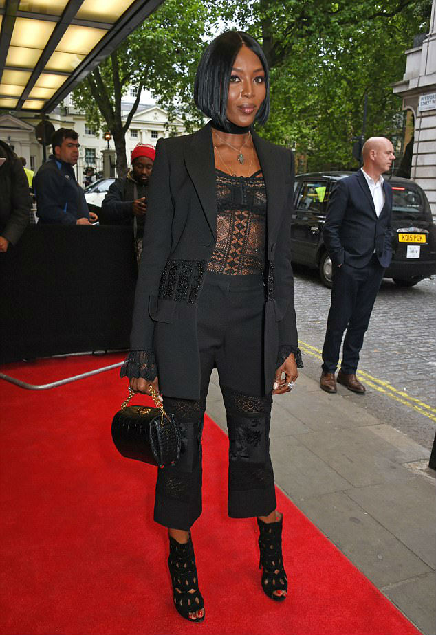 Naomi Campbell looked every bit the supermodel in a black Alexander McQueen suit with lace insets. Gorgeous, no?