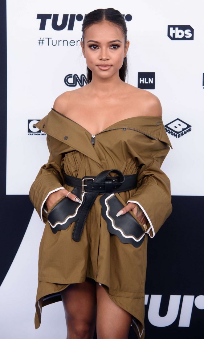 Karrueche attended the Turner Upfront Presentation with her Claws cast mates, turning a $2,500 Fendi Camel Cotton Coat into a dress:
