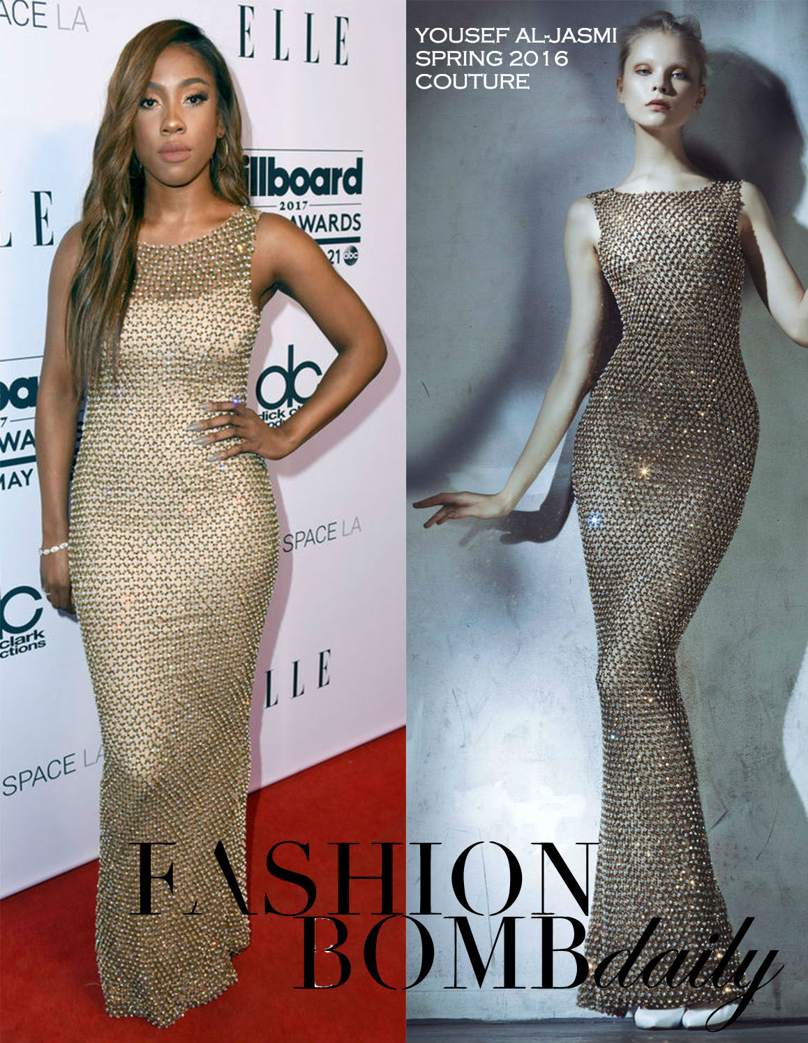 Sevyn Streeter went glam at the Billboard x ELLE Women in Music Event, slipping on a Yousef Al-Jasmi Couture Spring 2016 Mesh Embellished Gown: