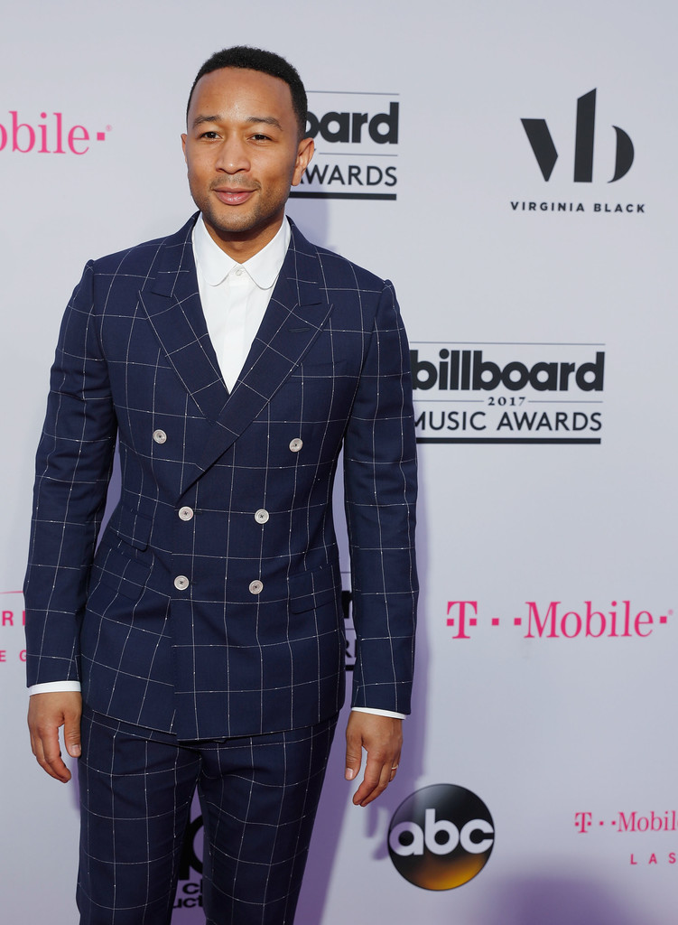John Legend was dapper in a double-breasted check Gucci suit. So handsome!
