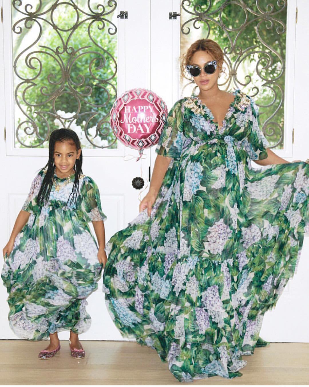 Beyonce, Blue, and Jay hit up the Museum of Ice Cream on Mother’s Day, with mom and daughter in matching Dolce & Gabbana Hydrangea decorated dresses: