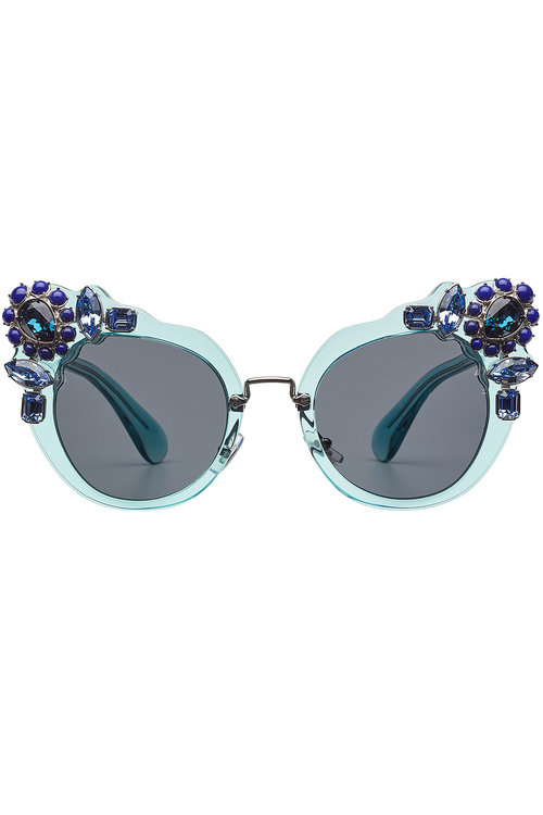 She is living life like it’s golden! She further accessorized with $595 Giuseppe Zanotti Crystal Embellished Mirror Sandals and $429 Miu Miu Cat Eye Sunnies.