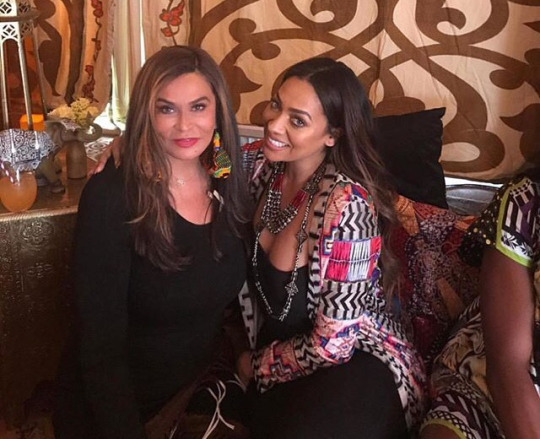 Lala smiled with Ms. Tina in an Ott Dubai cardigan.