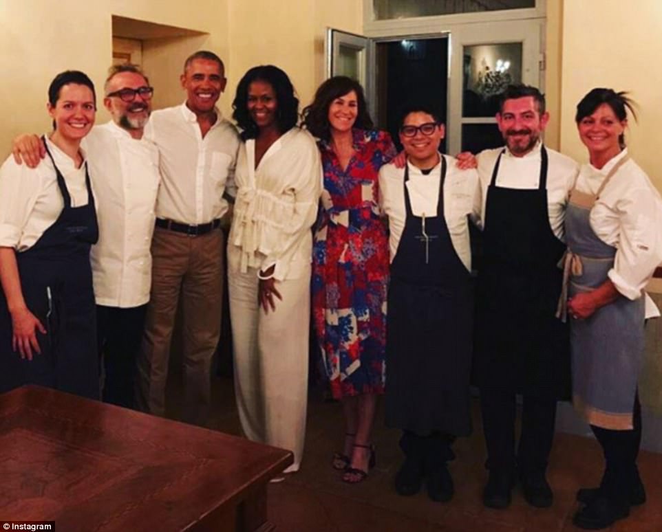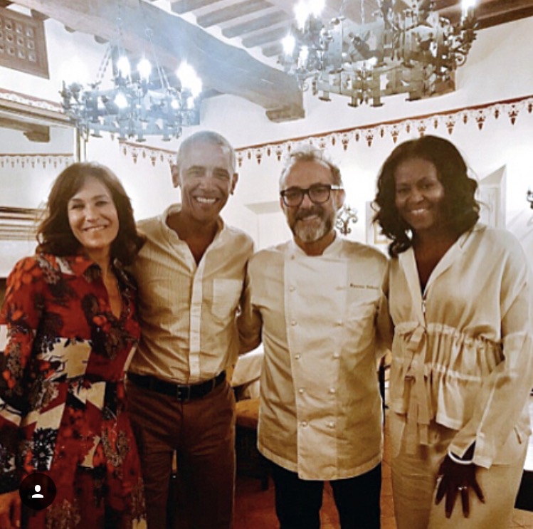 Former First Lady Michelle Obama enjoyed dinner with her husband and former President Barack Obama at Osteria Francescana in Italy while wearing a Zero + Maria Cornejo $895 Nola top and $795 Eda pants.