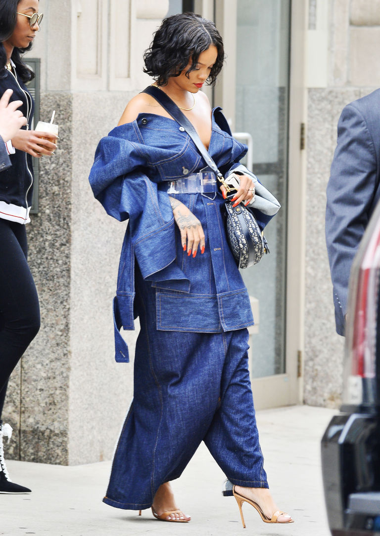 Rihanna’s got a thing for Matthew Adams Dolan’s designs! The trendy singer was spotted heading to a meeting in New York City wearing a Canadian Tuxedo by the designer.