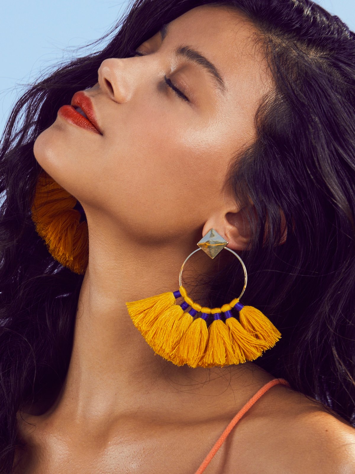 e bold while sporting $28 Full Bloom statement earrings, featuring a fringe fan design.