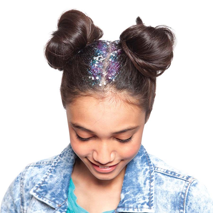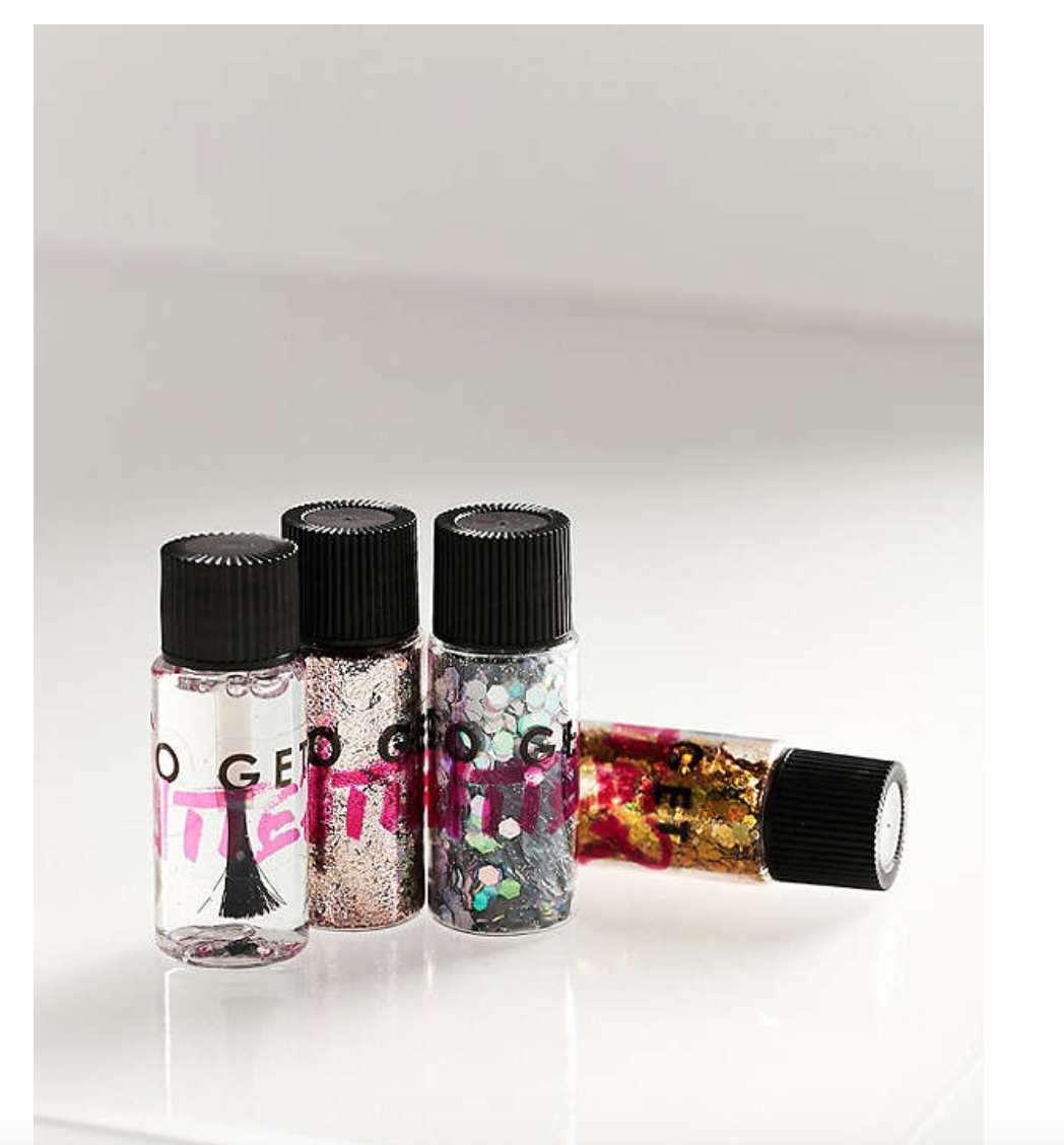 The girly confetti is typically applied to your face to enhance that already beat glow. But wearing it in your hair, arms, chest, and even on your rear has been gaining a lot of buzz at festivals and as a daily look (the hairstyle below is often referred to as the Unicorn or Mermaid look.)
