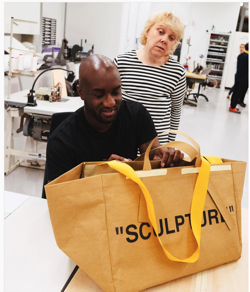 IKEA’s oversized blue “Frakta” bag is no secret to the masses of minimalist shoppers. It’s even inspired high-end designers like Balenciaga, but now they’ve found a designer whose architectural vision matches their own: Virgil Abloh from Off-White.