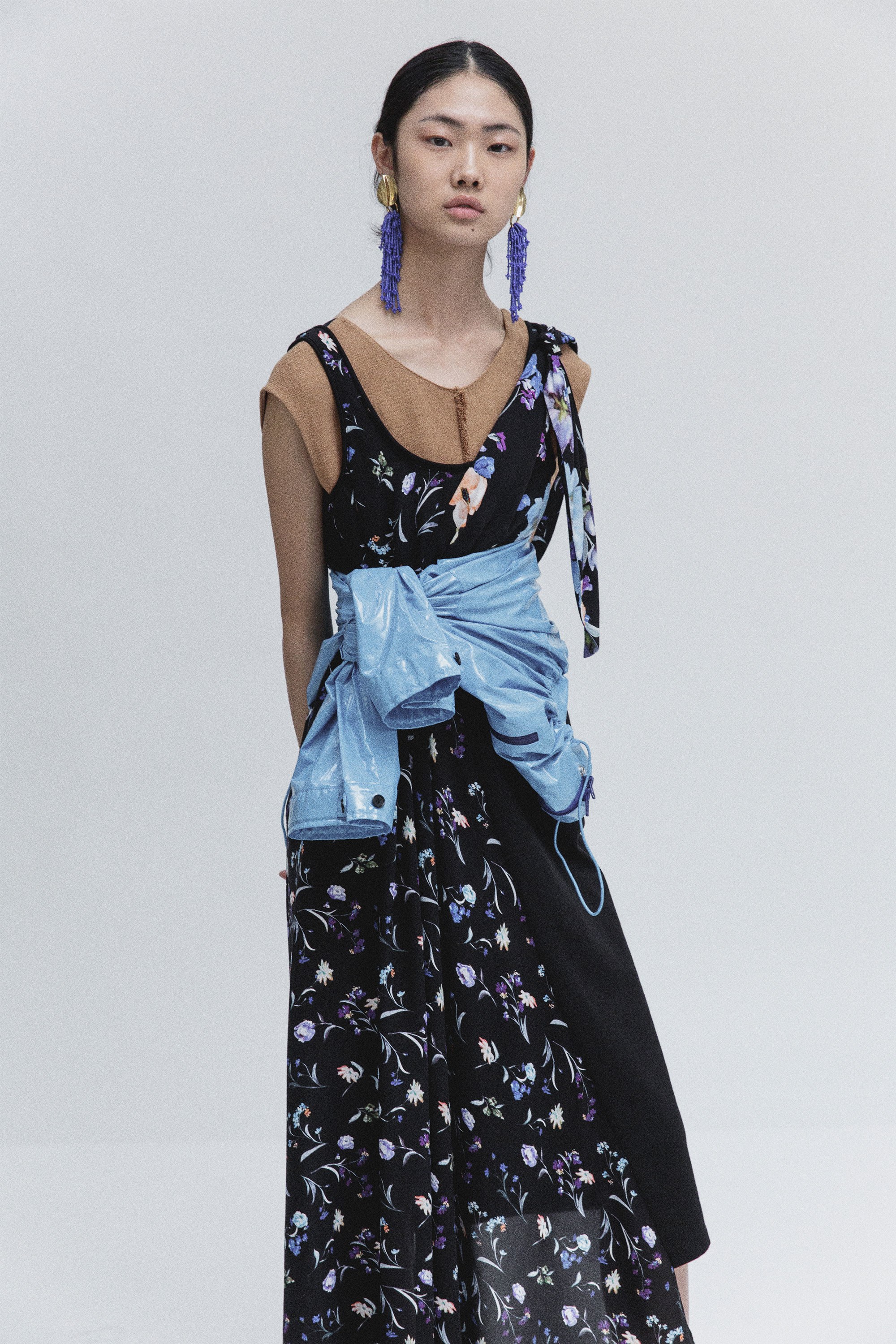 Glossy jackets tied around the waists of several looks felt incredibly modern, functional, and how actual fashion-minded people might actually wear them based on the temperature changes during Fall—but they often detracted from the rest of the ensembles, becoming the main focal points.