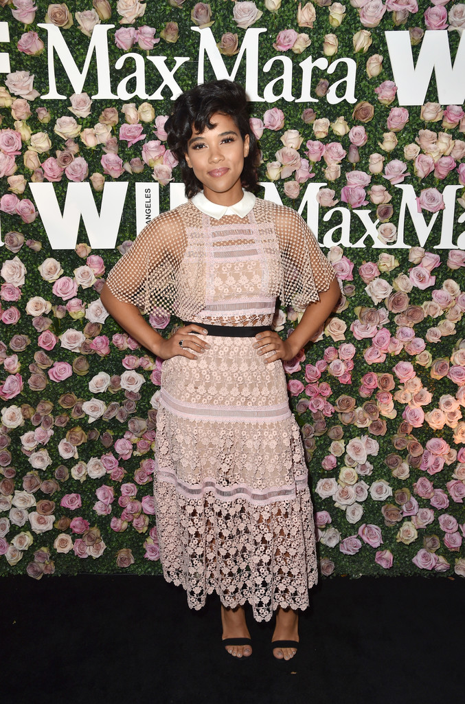 Alexandra Shipp was pretty in pink, clad in a $615 Self Portrait Guipure Lace Midi Dress. Hot!