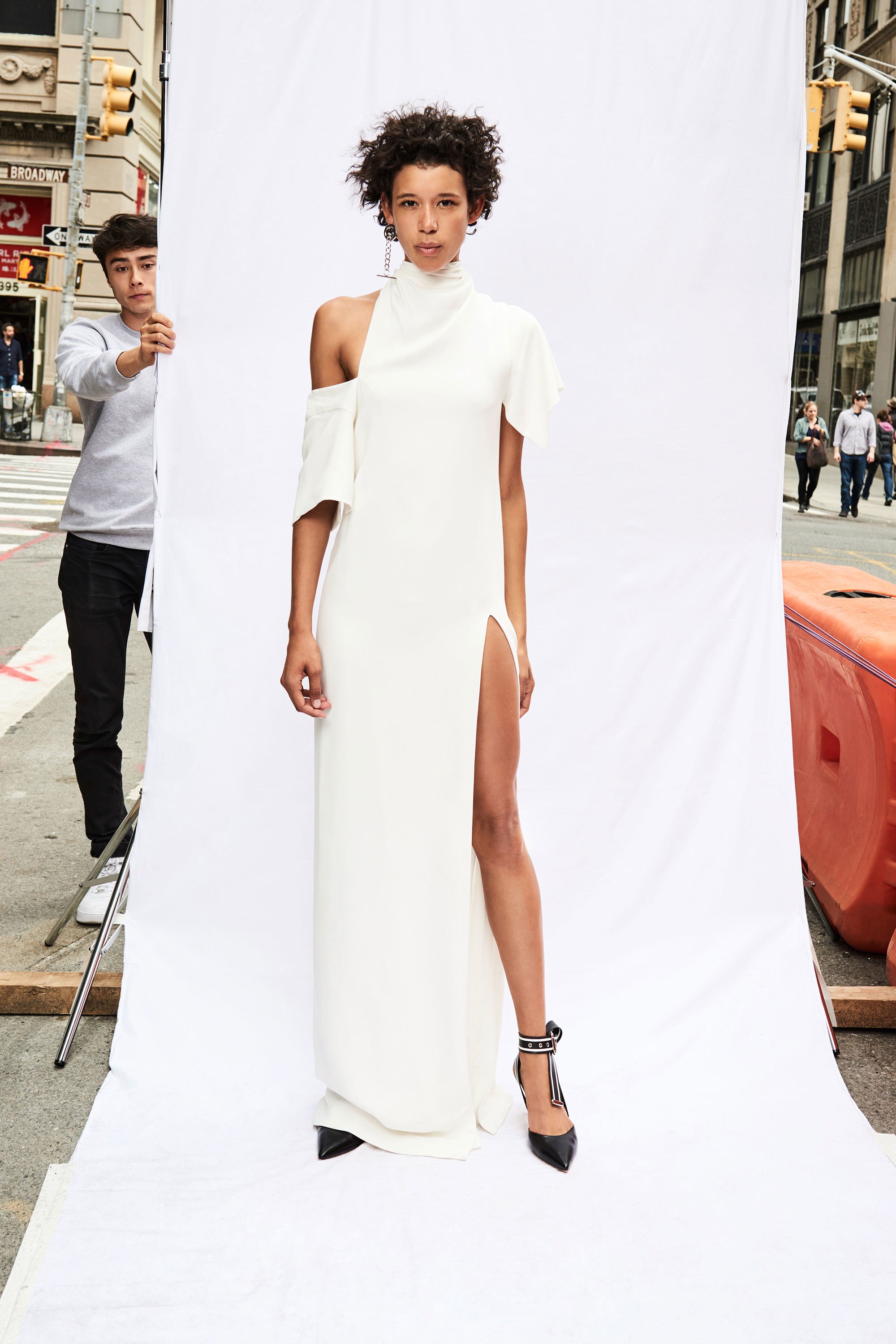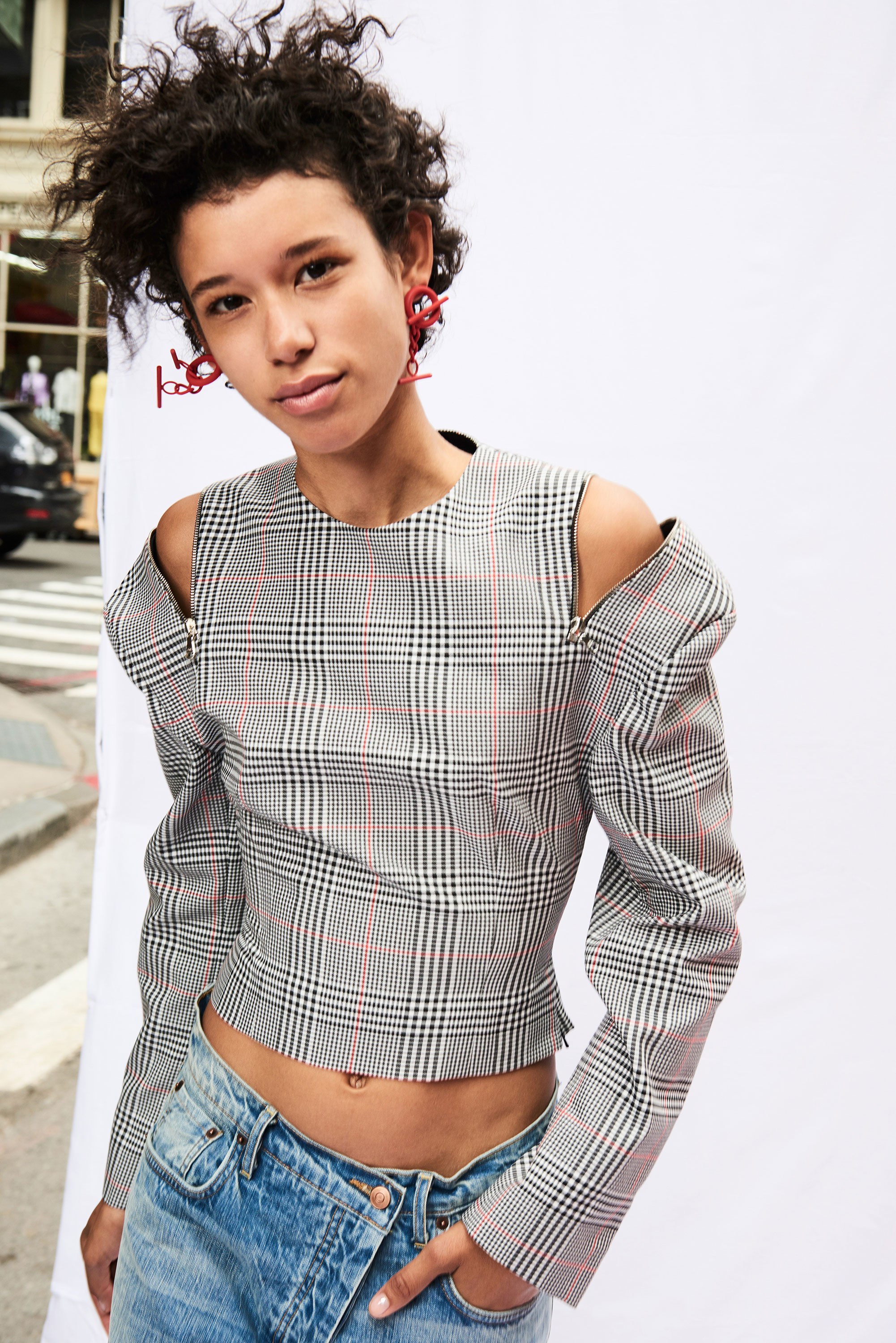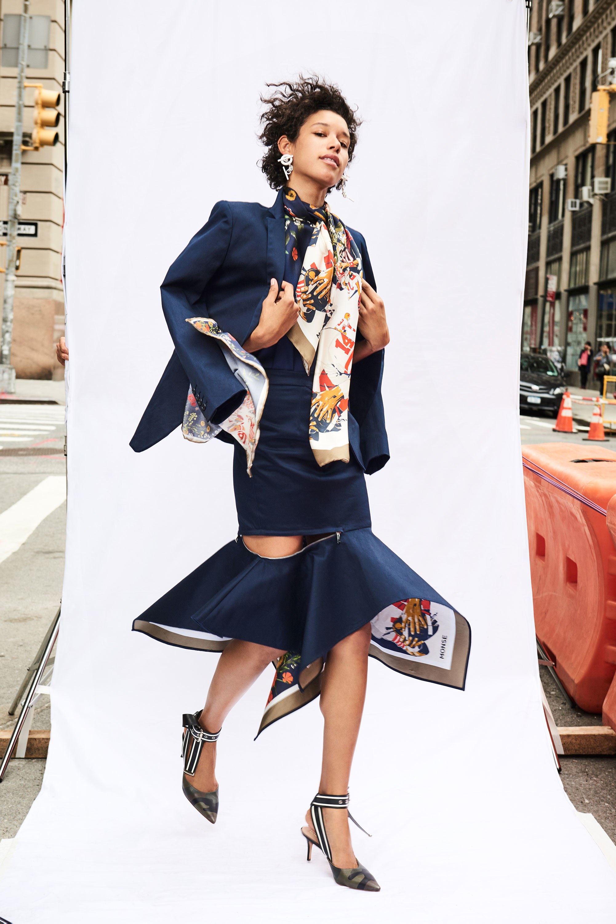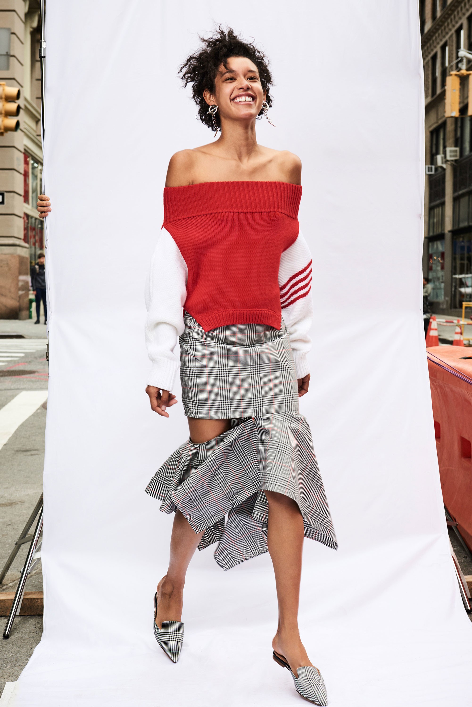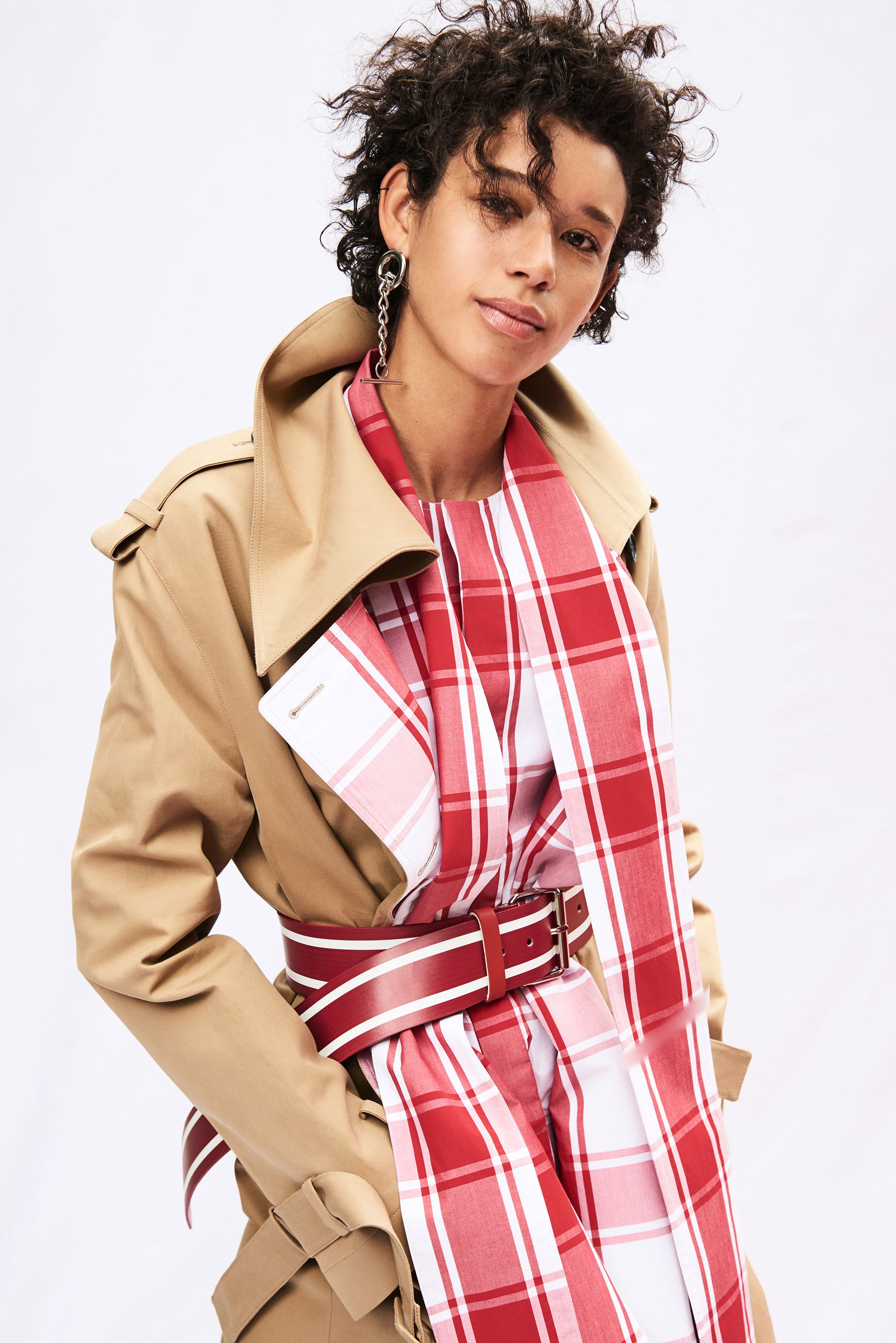 Checks are strewn across both slit shirt dresses and functional coats, while tops are deconstructed and disheveled in the best senses of the word—with asymmetric necklines and hemlines. Prints also peek through on flounce hem skirts with zip-accented hemlines that literally appear to almost fall off: just the right amount of edge for the already daring Monse lover.