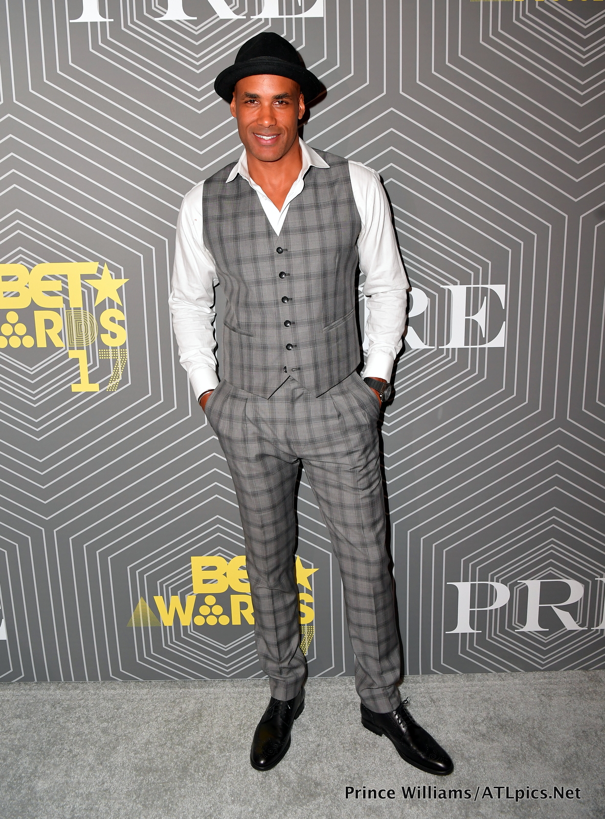 Boris Kudjoe was snazzy in a plaid vest and pants combo.
