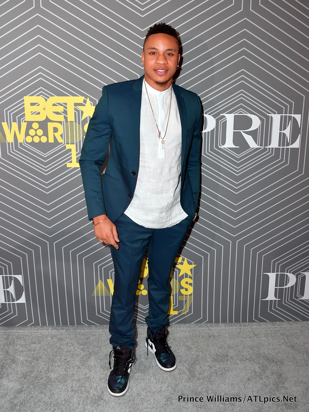 Rotimi looked cool in a blue suit and Nike kicks.