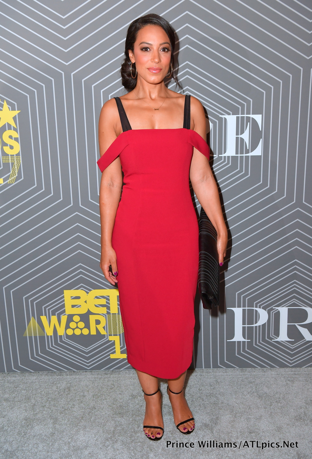 Political activist Angela Rye kept it simple in a red shift.