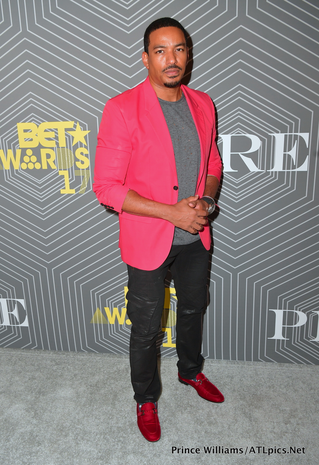 Laz Alonso represented for the fellas in a red accented ensemble.