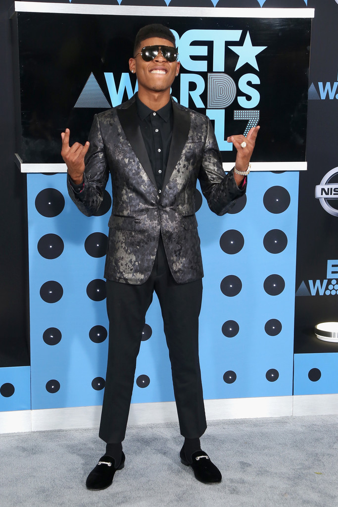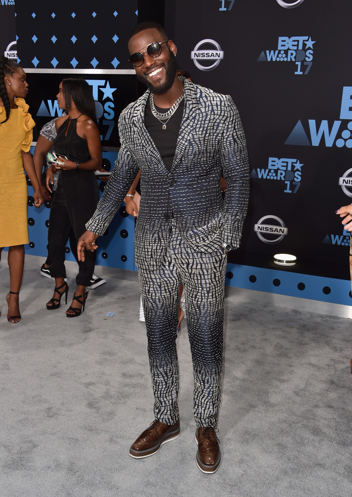 Bryshere Gray was a total rockstar in a textured sports coat, visor futuristic shades, and loafers.