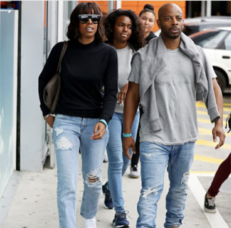 Kelly and Tim subtly match their swag, and were spied out recently sporting very similar denim destroyed jeans and a solid top to match.