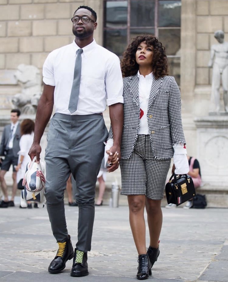 Yes, the Wayde duo was spotted over the weekend during men’s fashion week in Paris, coordinated and looking ever so dapper! For the Thom Browne show, they wore muted grey’s, black and white tones, but still kept their attire funky with a splash of color.