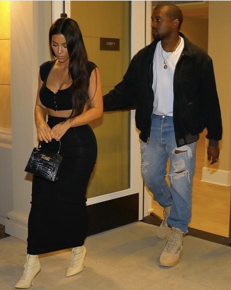 Kimye know’s how to keep it fashionably coordinated. The two had a date night recently, and both wore brown Yeezy shoes. Kim paired her look with all Black and Kanye mixed and matched with distressed washed jeans, a grey shirt and a black bomber. But while we’re at it, let’s quickly reflect on some of their most infamous twinning ensembles: