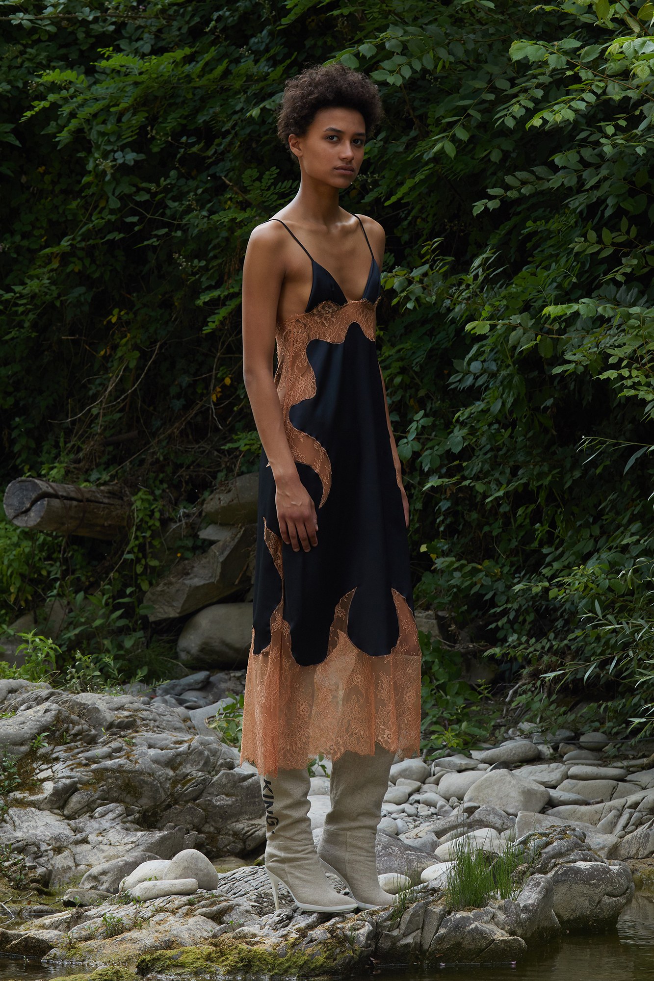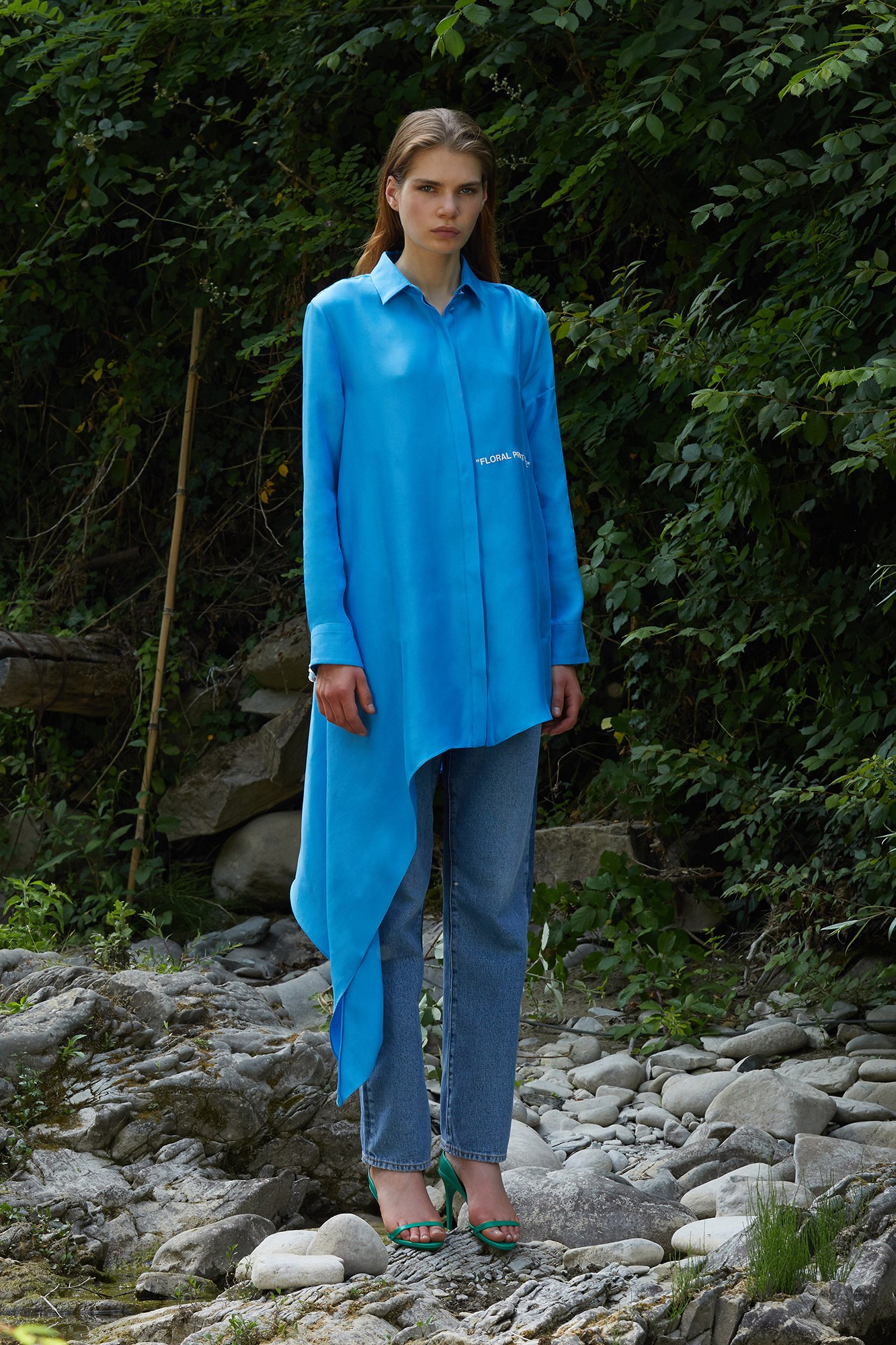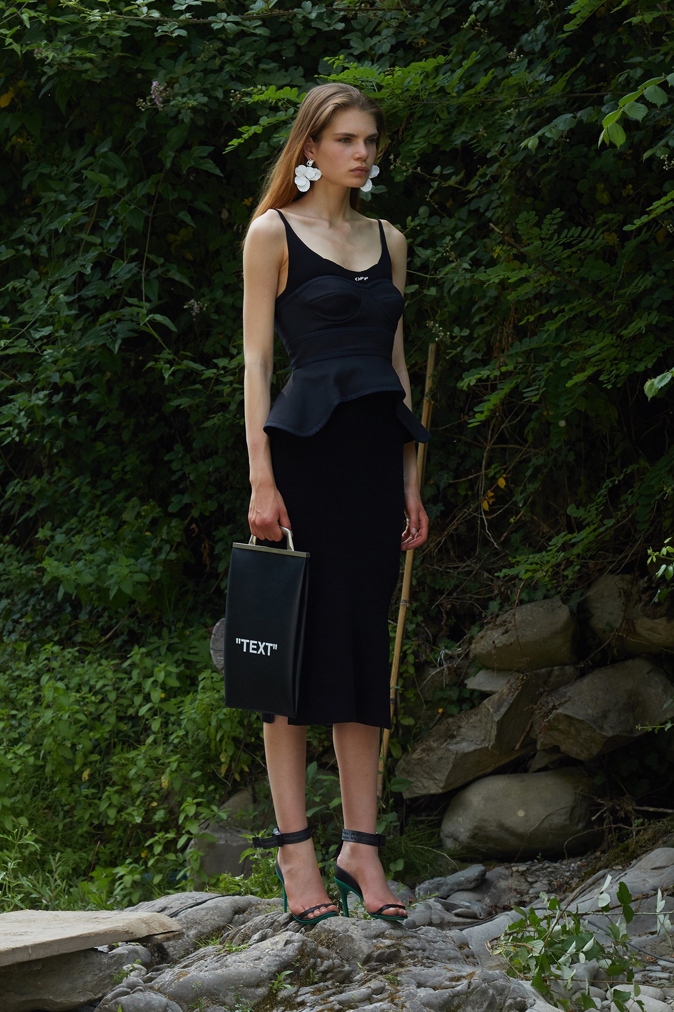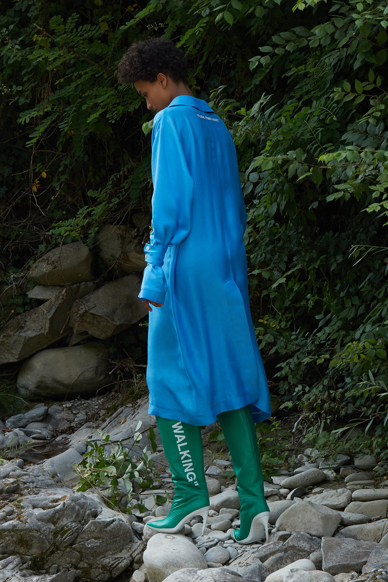 The brand’s logo was on display, as were other minimal yet powerful graphics. “Text” was strewn against a black leather, handheld bag, while “Floral Print Here” and “Walking” were clever additions to breezy tunics and boots.