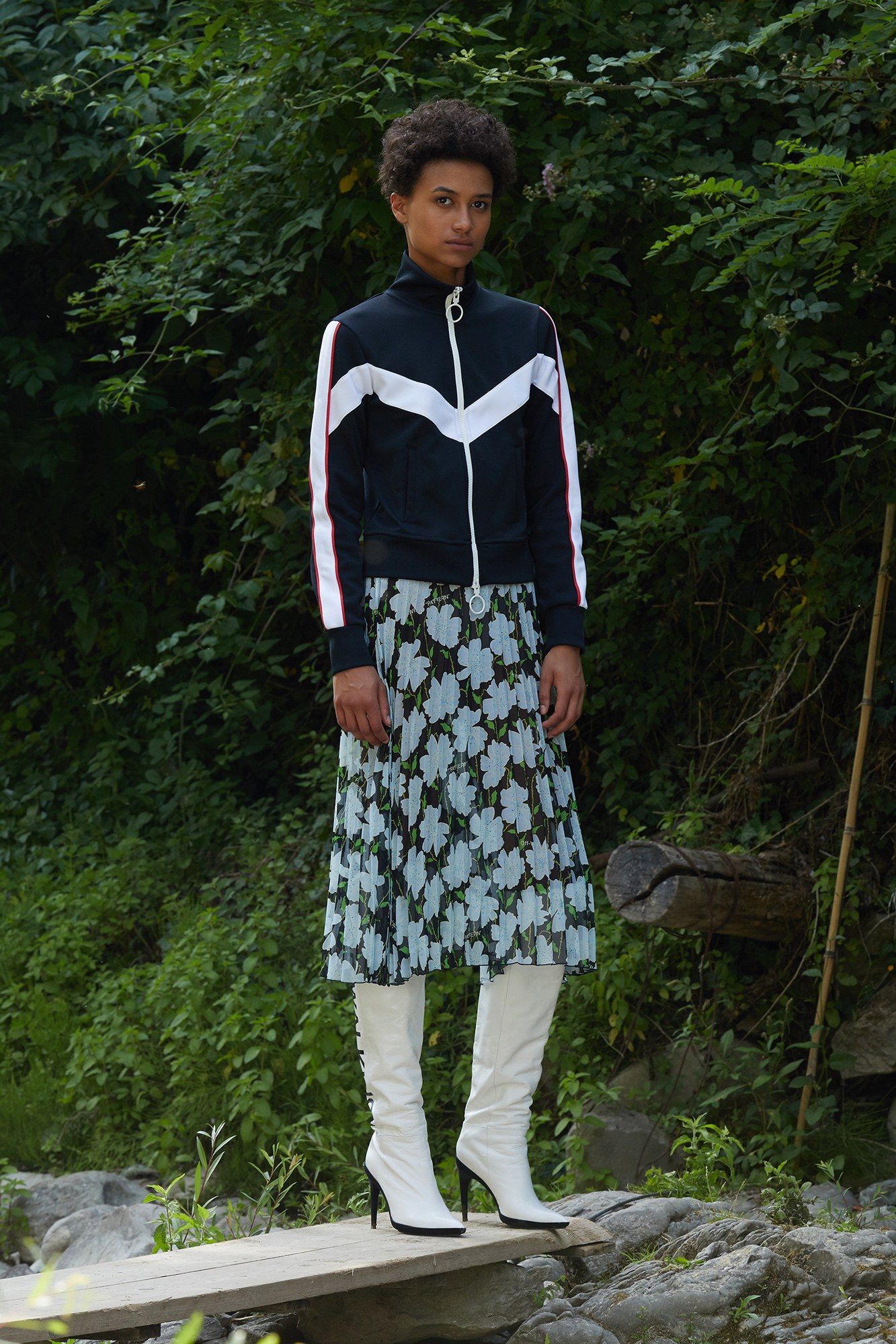 Florals and stripes encapsulated the collection’s prints—giving a vibrant edge to everything from pleated, knee-length skirts to long-sleeve, draped mini dresses.