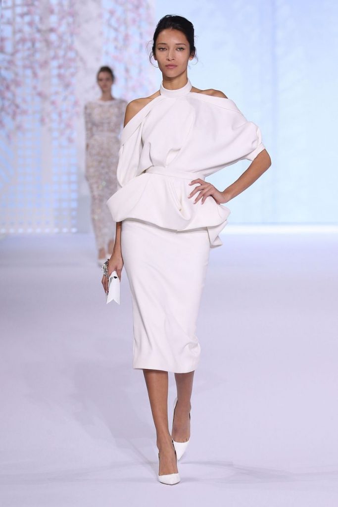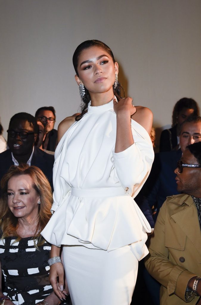 It’s Couture week in Paris and talented thespian Zendaya took to the French capital in fine and curated style. The beauty stole the show at the Ralph & Russo Fall 2017 presentation outfitted in a Spring 2016 White Ruched Waist Peek-a-Boo Shoulders Open Back Dress from the iconic fashion house: