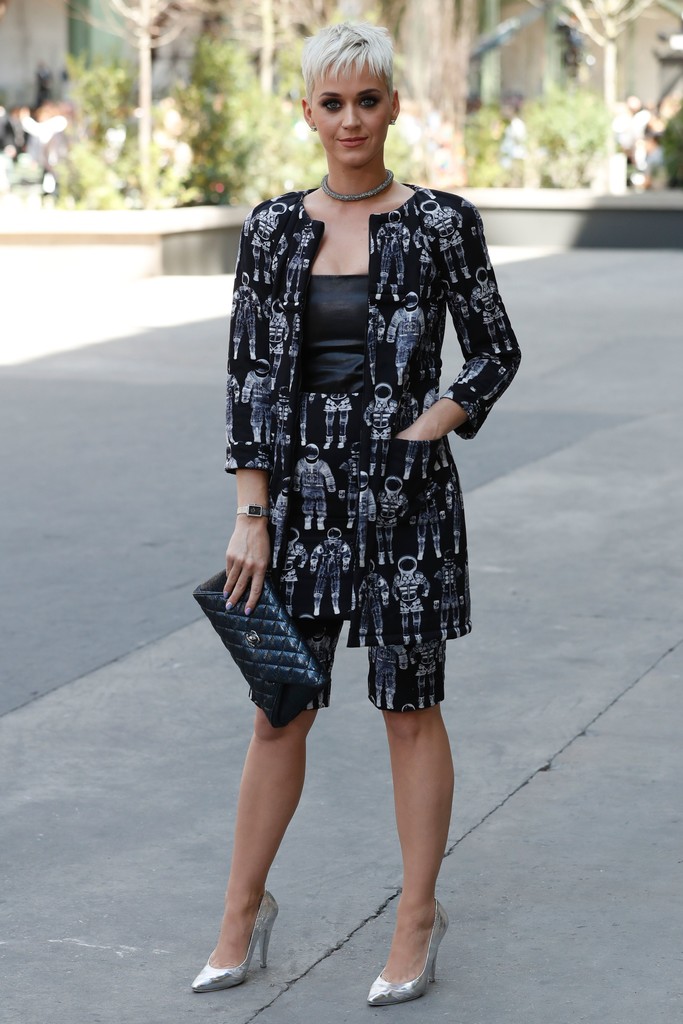 Katy Perry was intergalactic, in an astronaut-print short suit. Cute!