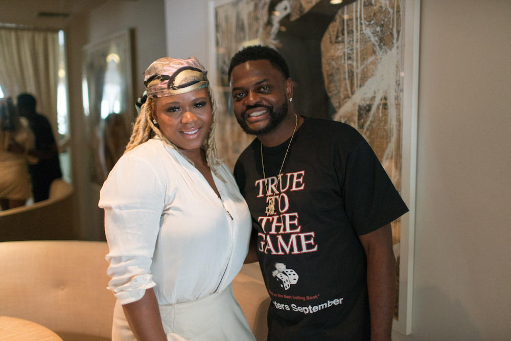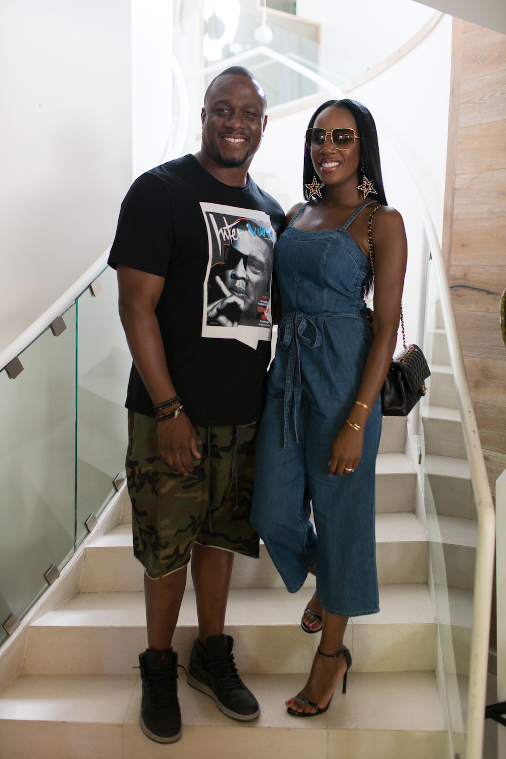 And the event hosts rocked neutral tones! I rocked a Halston top, Marc Jacobs skirt, Louboutin Heels, and a Gucci scarf while Damon worked Moschino, and Monica slipped on custom pieces and a Hermes belt.