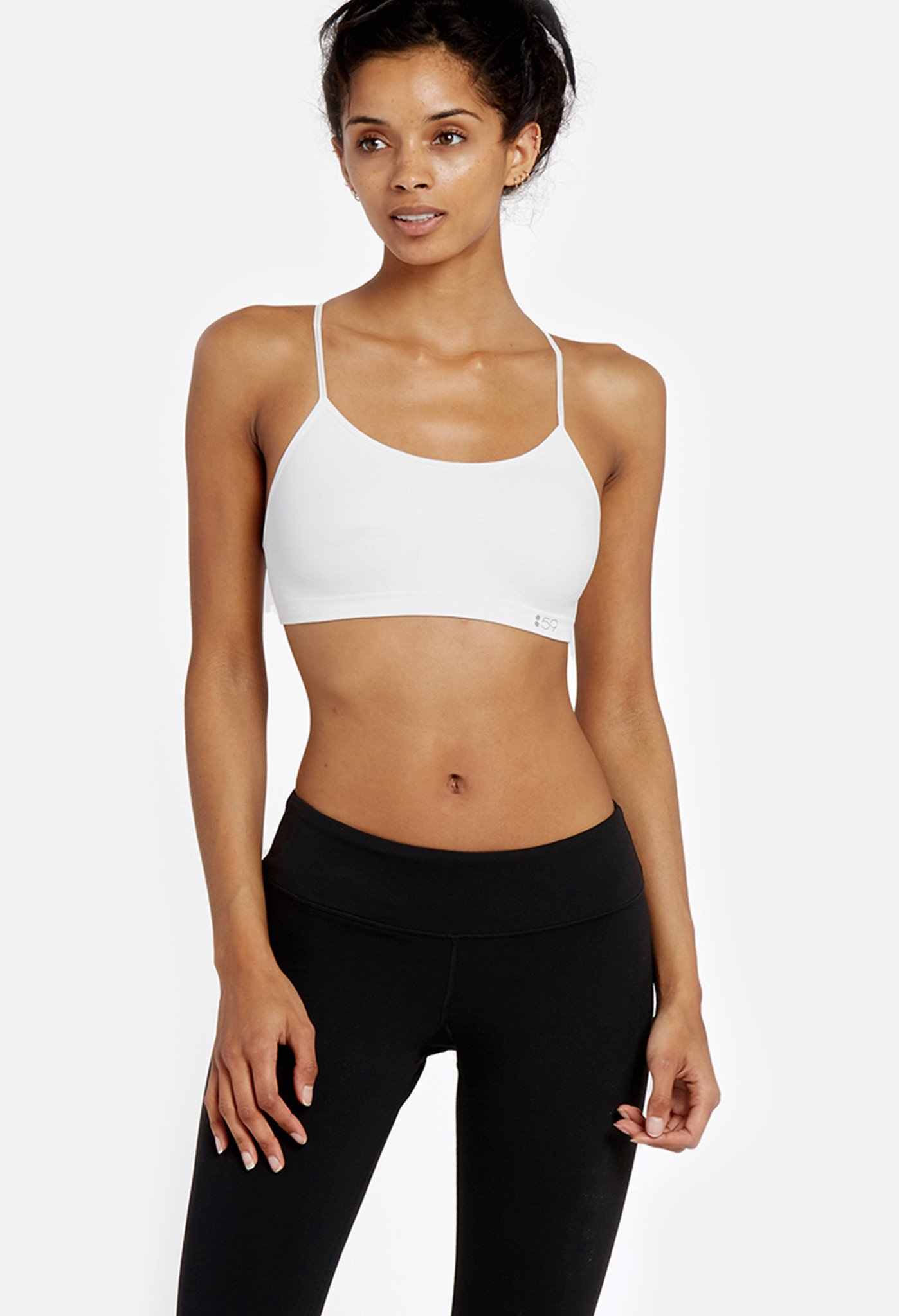 Her seamless bra is crafted from moisture-wicking, quick dry fabric. It’s ideal for layering and best for yoga, barre, and spin class…or athleisure, in the vein of Bella.