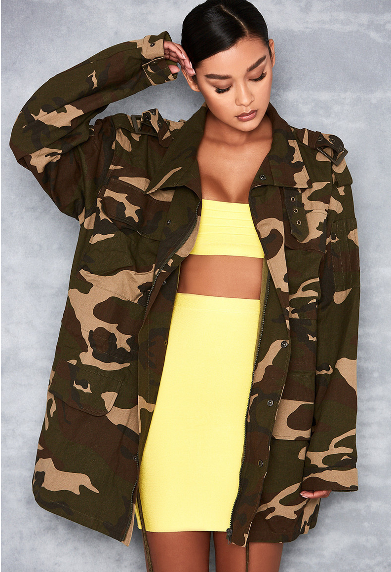 She stunted on the ‘Gram recently in a $114 Mistress Rocks Camouflage Jacket, $60 Coal N Terry Vintage Fila Shirt, $90 Coal N Terry Distressed Lace Up Shorts, and Dsquared2 Hiking Boots: