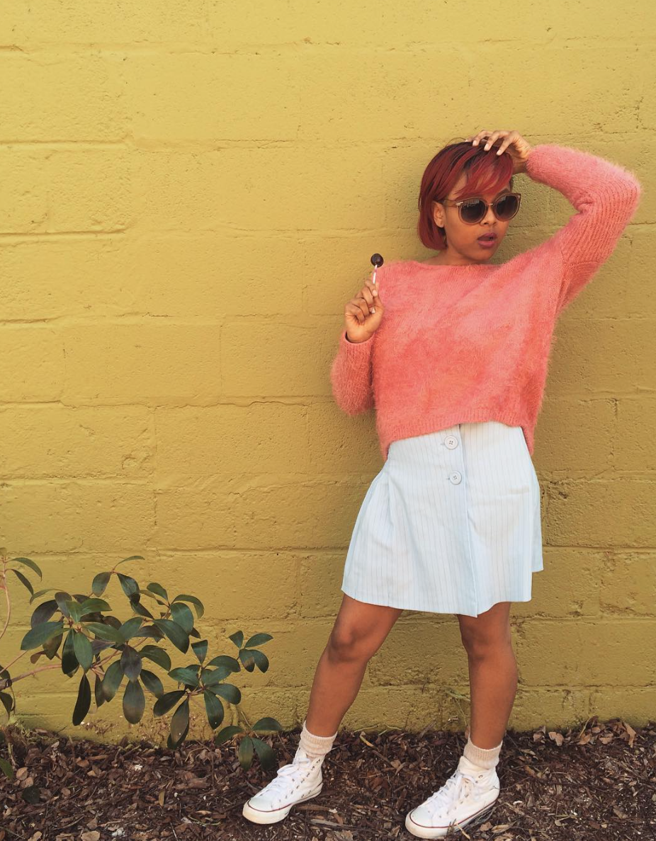 “I’m a thrift store enthusiast and can thank the many vintage shops I purchase threads from for over 90% of closet. My favorite stores are Goodwill, L Train Vintage, and Beacon’s Closet. I’m all about styling and profiling on a budget!”