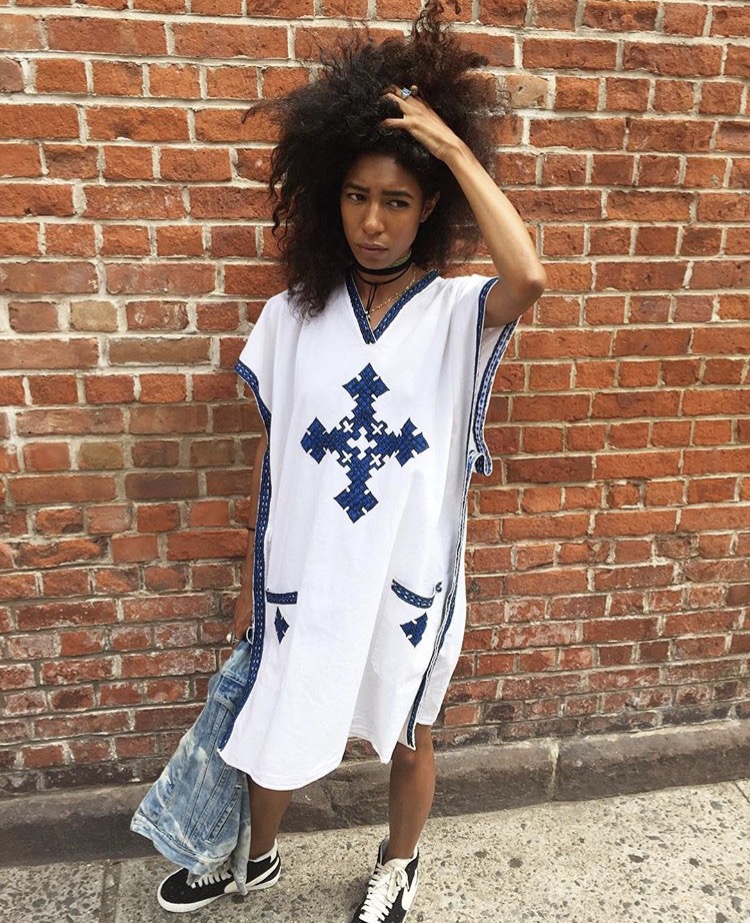 She writes, “I have somewhat of an urban boho style–very free with a variety of textures, colors, and patterns.”