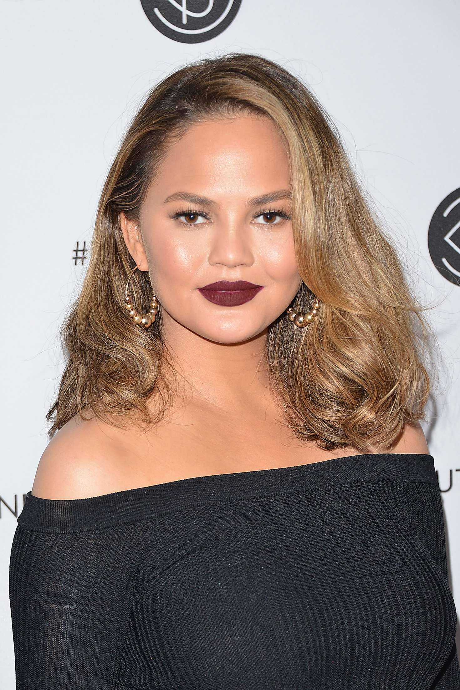 Chrissy Teigen made an appearance at Beautycon LA 2017 Day 2, sporting a $275 Jonathan Simkhai Black Released Ribbed Bell Sleeve Top and $218 Cult Gaia Natural Luna Bag: